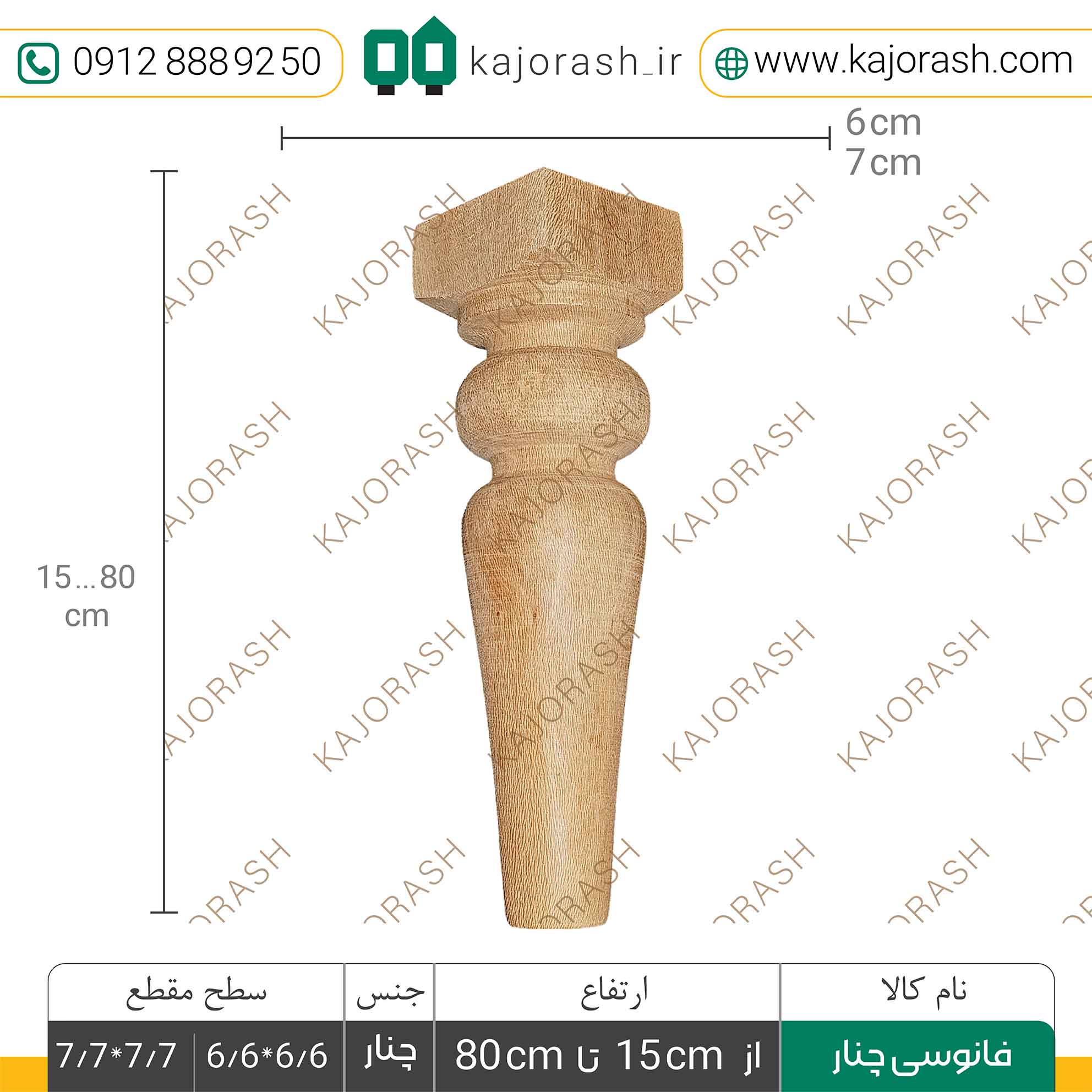 پایههای چوبی کاجراش مطابق سفارش مشتری و در ابعاد متنوع تولید میشوند.